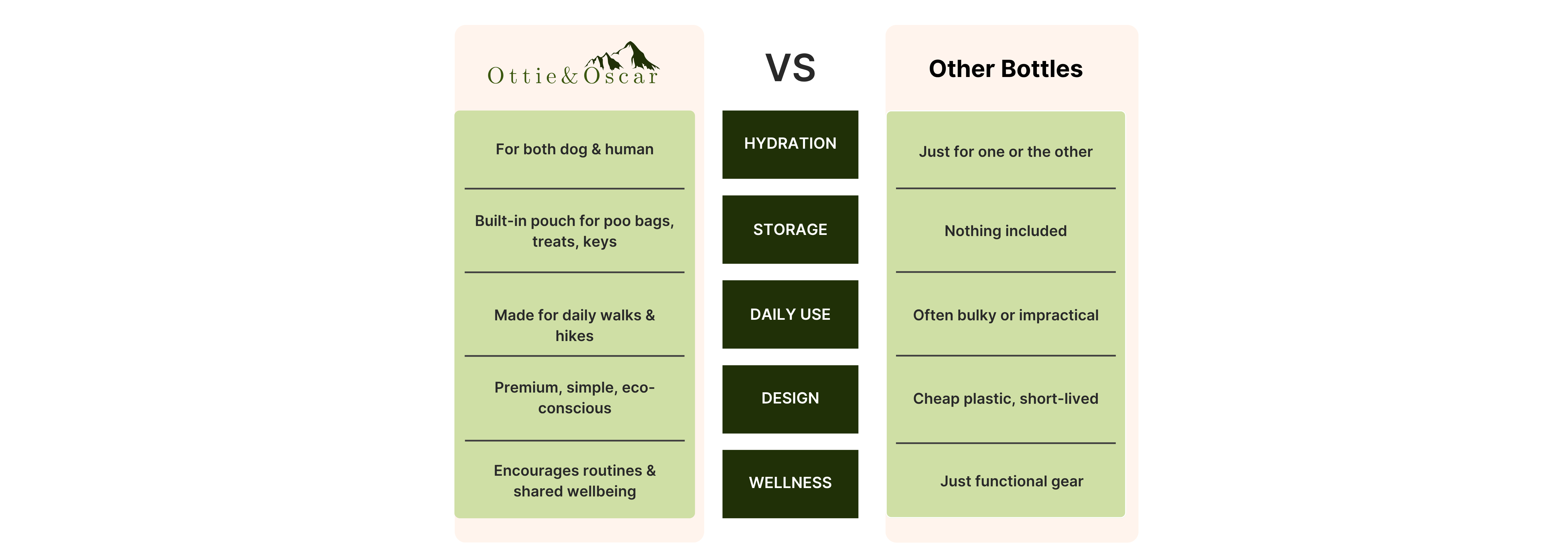 " My dog drinks more on walks now, and so do I. This bottle is a total game changer. Looks great, easy to carry, and it genuinely feels like it was designed for our routine."