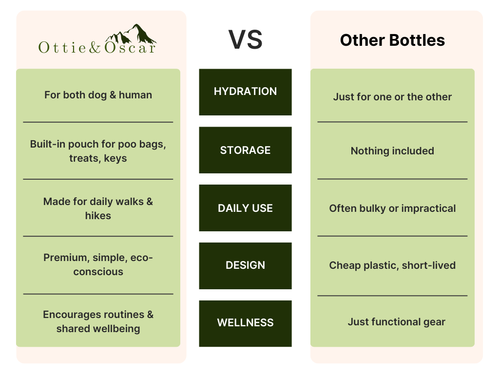 " My dog drinks more on walks now, and so do I. This bottle is a total game changer. Looks great, easy to carry, and it genuinely feels like it was designed for our routine."